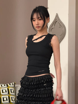 BLUMARINE - Chiffon Top with Lace-Detailed Ruffles in Black & White