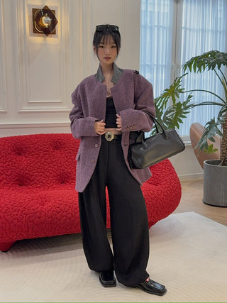 LESUGIATELIER FAUX LEATHER PADDED SAFARI JACKET
