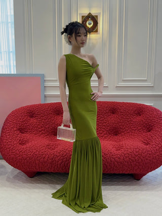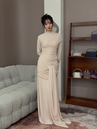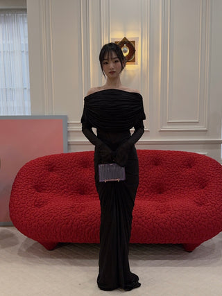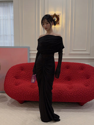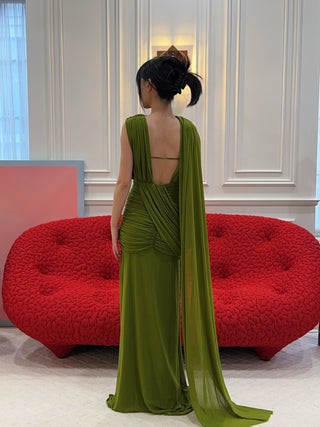 MAGDA BUTRYM - Wool Corset Dress with Sculptural Neckline in Red