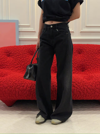 MM6 Maison Margiela - WIDE LEG JEANS BLACK/DARKGREY