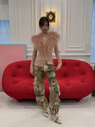 VAILLANT - RIBBED JERSEY CARDIGAN WITH BUILT-IN BRA TOP / FUSHIA