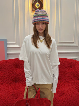 OPEN YY - LAYERED STRIPE T-SHIRT / BLACK