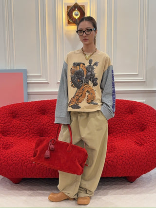 NATASHA ZINKO COMBO FLORAL PRINT TSHIRT LS PUSSY BOW BLOUSE