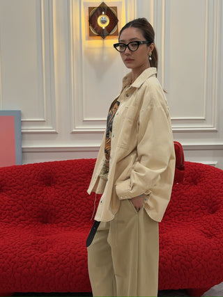LESUGIATELIER FAUX LEATHER PADDED SAFARI JACKET