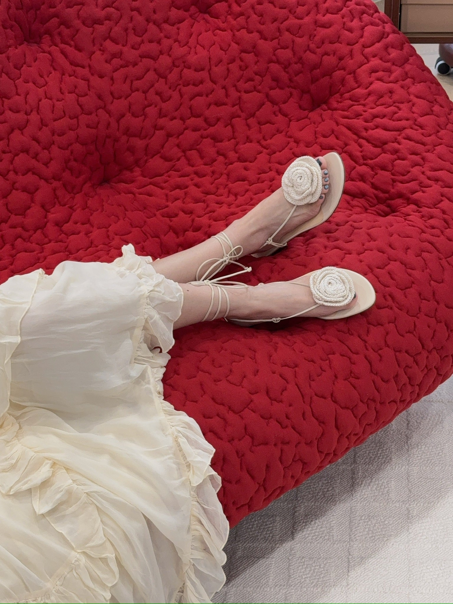 MAGDA BUTRYM Wrap Around Flat Flower Sandals in cream crochet