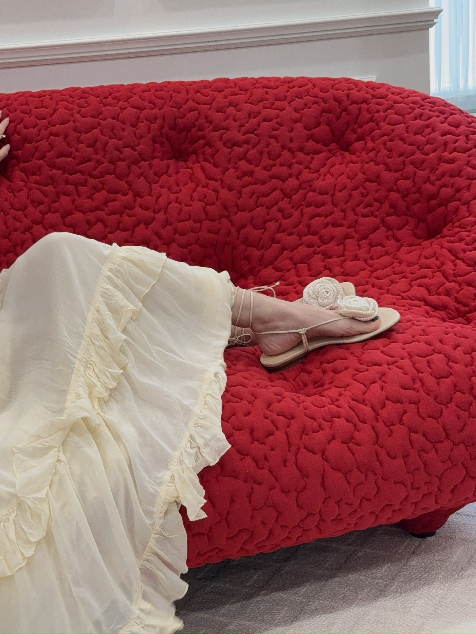 The signature Magda Butrym flower shoe is reimagined as a simple flat sandal, with strappy detailing and long wrap tie ankle straps. The crochet flower brooch is handmade by Magda's team of handweaving artisans, reflecting an important element of the brand's DNA. Nappa leather upper and sole.