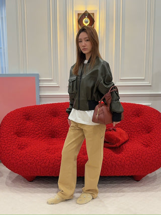 THE MANNEI LE MANS CROPPED BOMBER GREEN