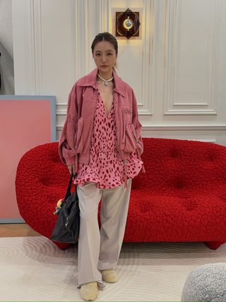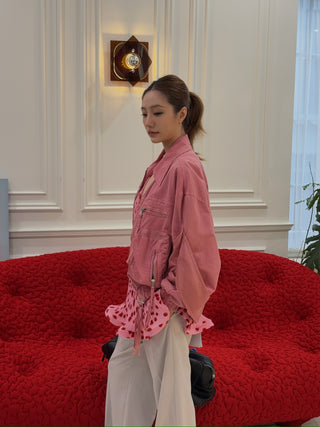 BLUMARINE DENIM BOMBER JACKET BUBBLEGUM