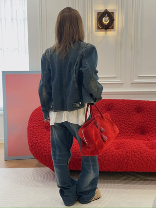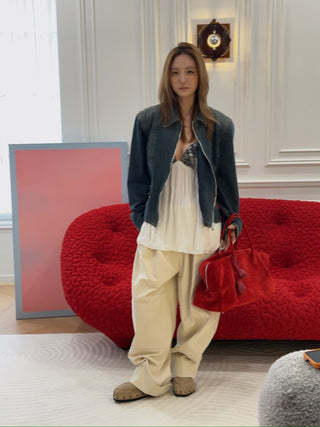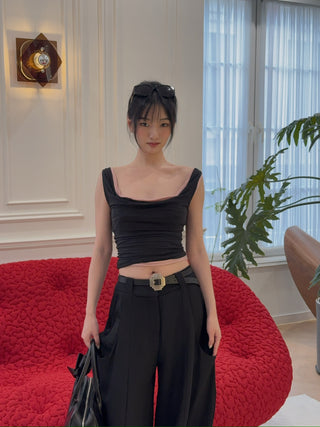 MAGDA BUTRYM - Round neck leather waistcoat in black vintage