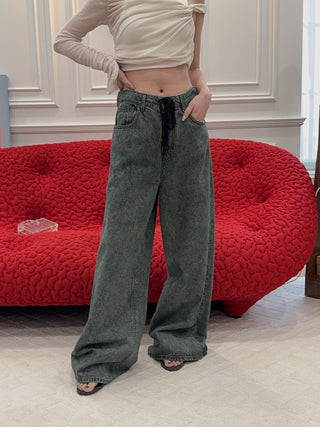 MM6 Maison Margiela - WIDE LEG JEANS BLACK/DARKGREY
