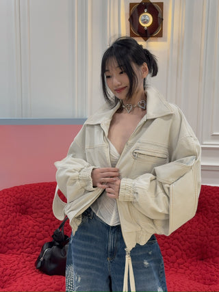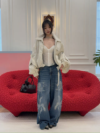 BLUMARINE DENIM BOMBER JACKET BUBBLEGUM