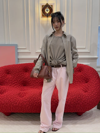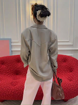 MAGDA BUTRYM - Round neck leather waistcoat in black vintage