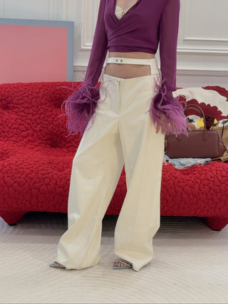 GIUSEPPE DI MORABITO WOOL MINI SKIRT WITH FEATHERS