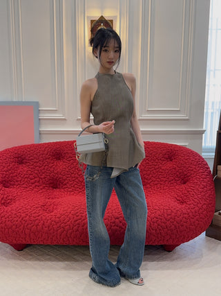AARON ESH Neck Wrap Waistcoat in Black Halter Sleeveless Corseted