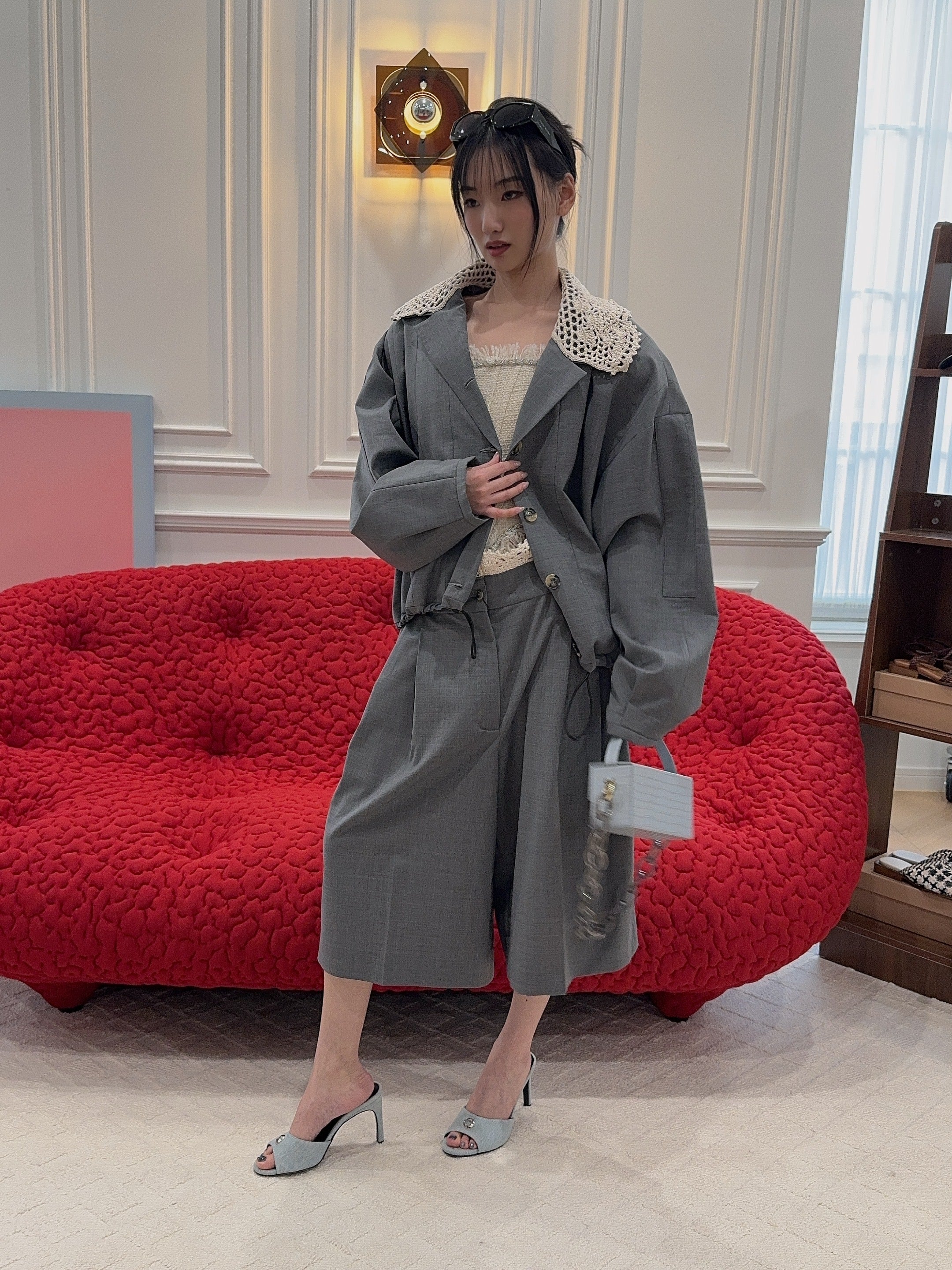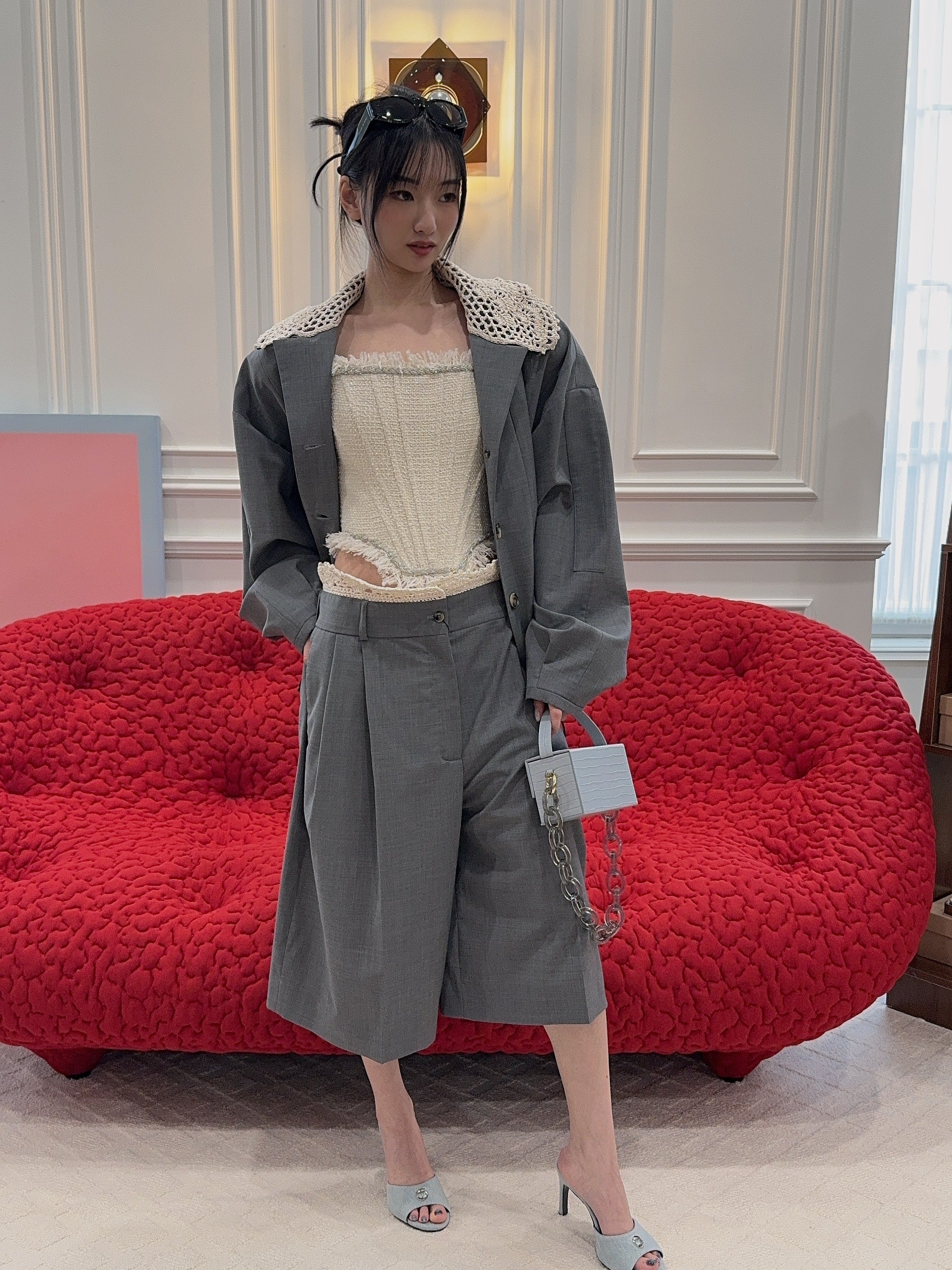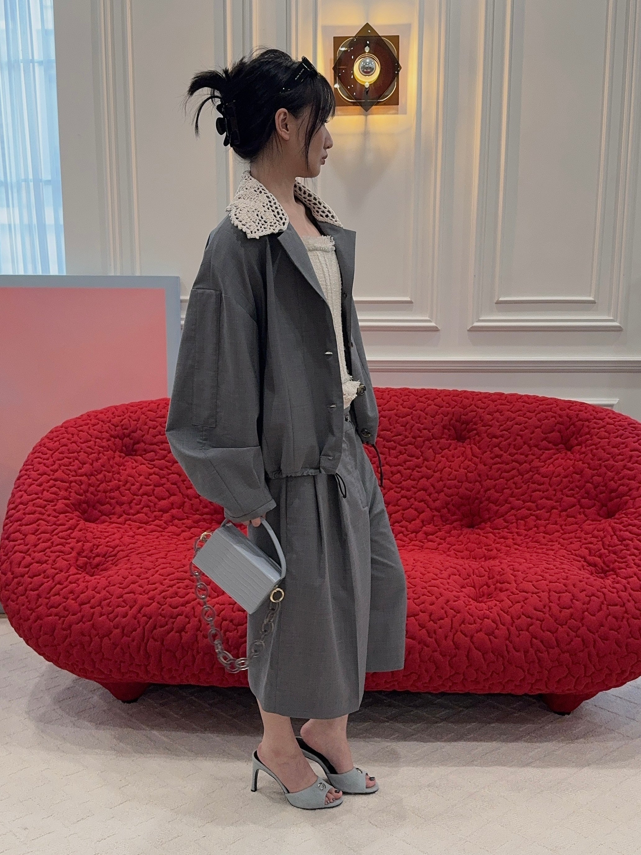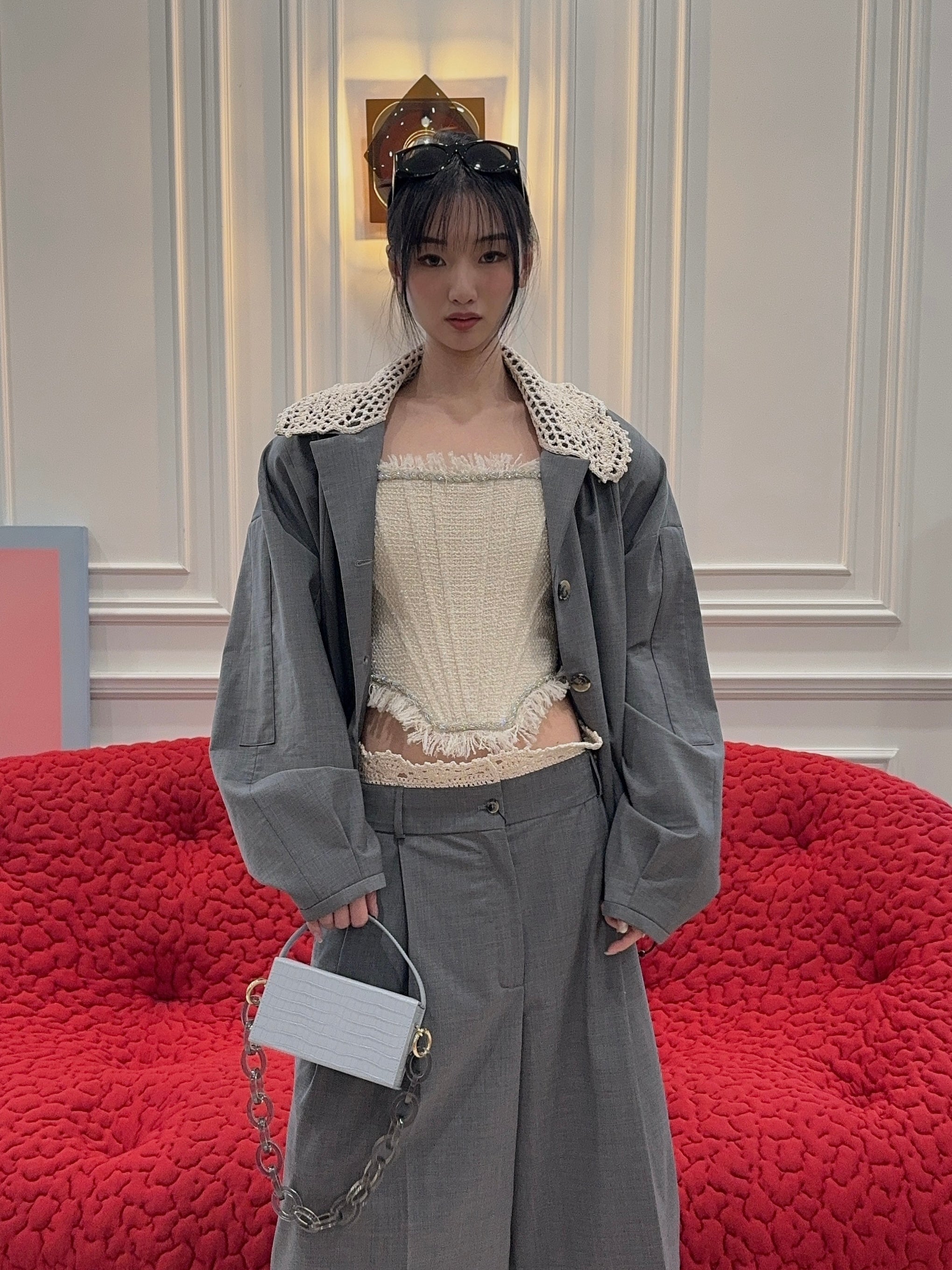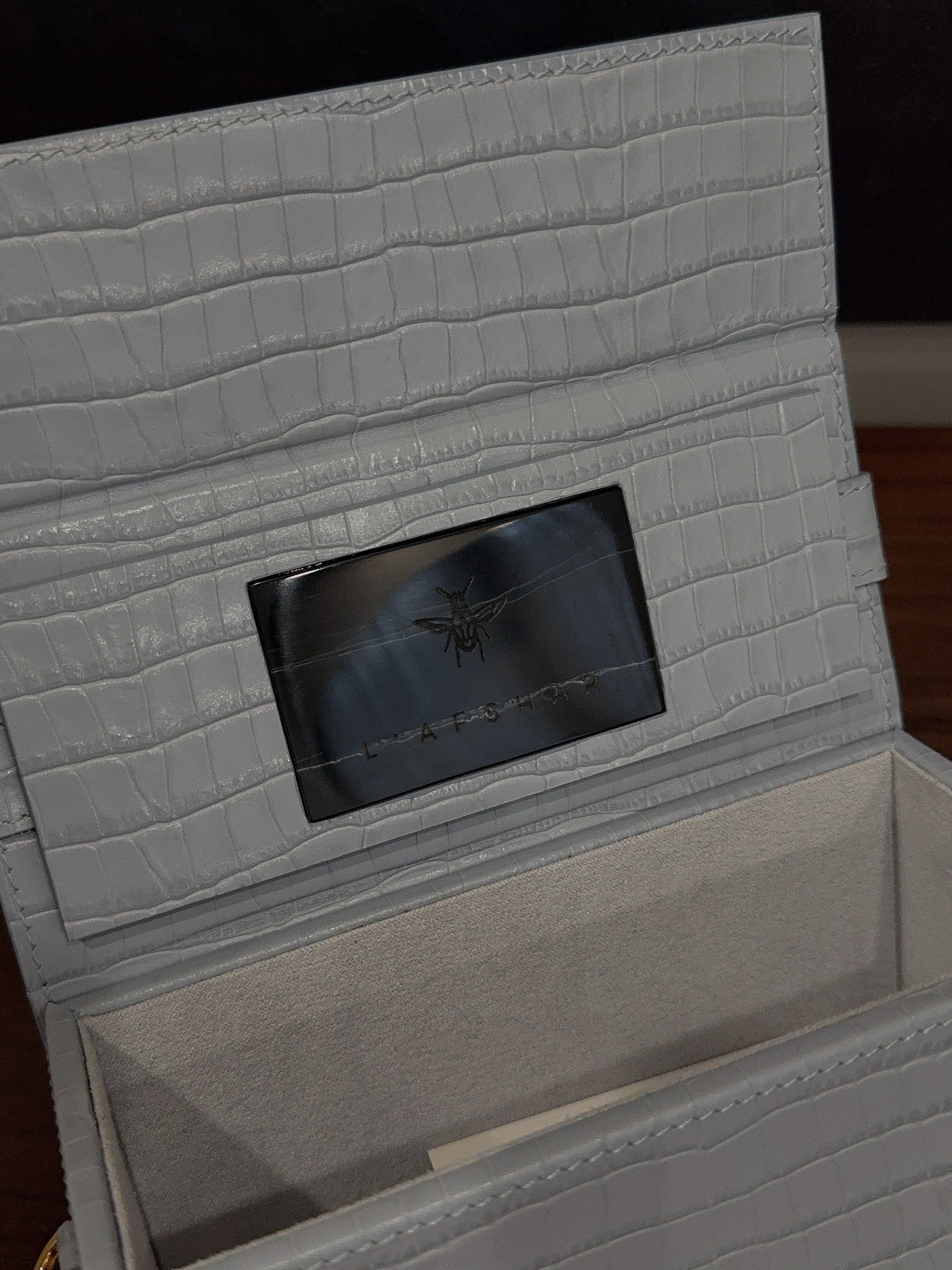 L’AFSHAR - IDA GREY CROC WITH LUCITE GREY CHAIN