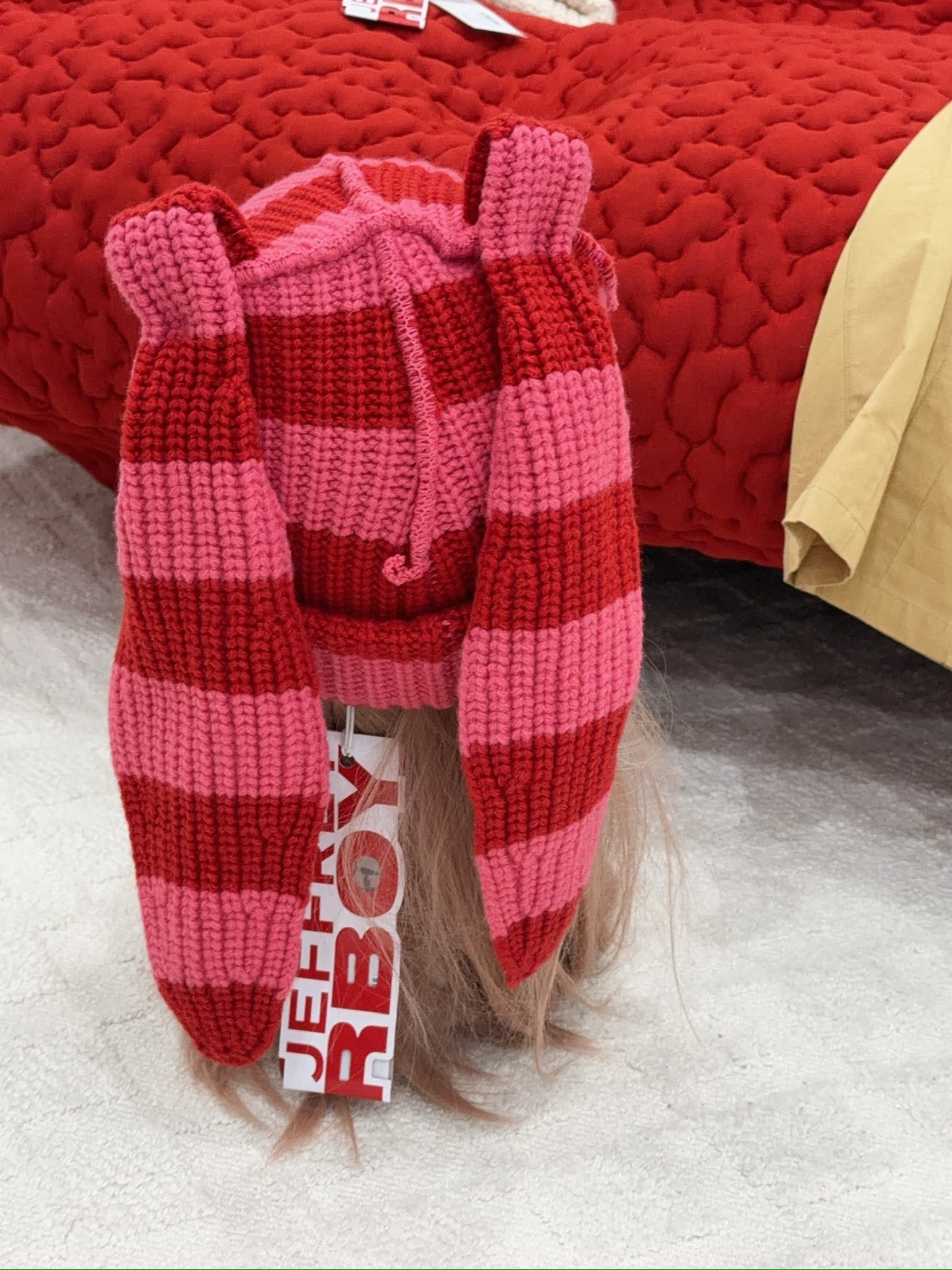 Can you tie them in a knot, can you tie them in a bow? With our Chunky Rabbit beanie, you've got ears for days. A LOVERBOY classic in lambswool, it features soft, floppy ears and our running fox motif.