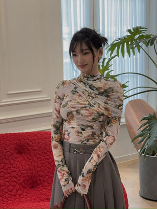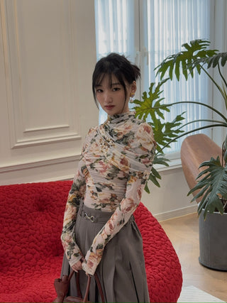 MAGDA BUTRYM - High-neck floral applique midi dress in green print