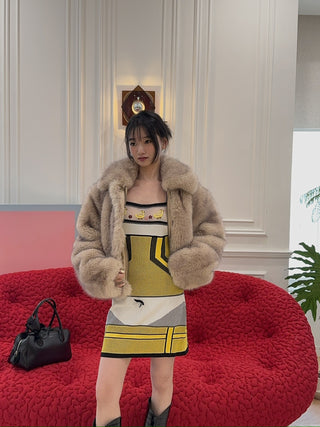 YVES SALOMON - Short down jacket with detachable fox fur collar and mittens