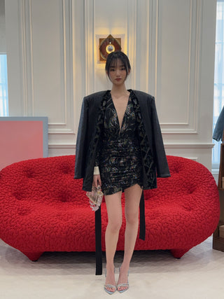 MAGDA BUTRYM - Round neck leather waistcoat in black vintage