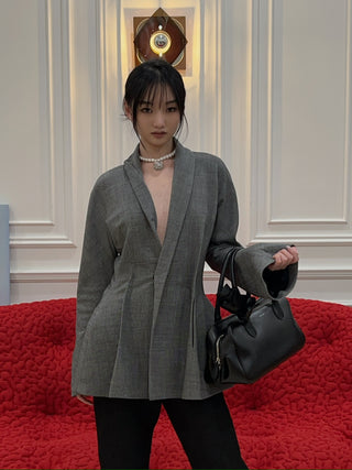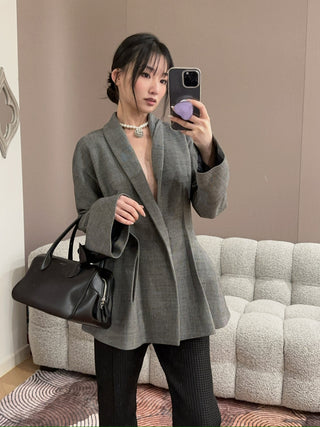 YVES SALOMON - DOWN JACKET MADE WITH LORO PIANA FLANNEL/FOX / GRIS ANTHRACITE