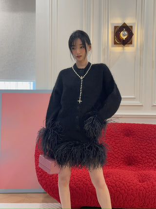 VAILLANT - RIBBED JERSEY CARDIGAN DRESS WITH BUILT-IN BRA / ECRU