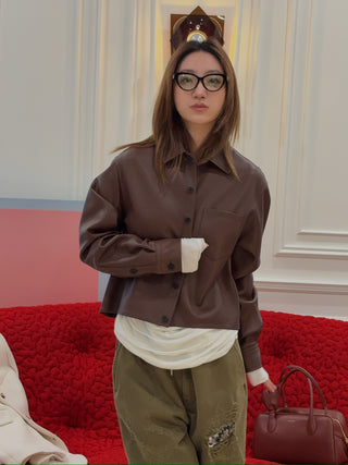 COMMON LEISURE CROPPED SHIRT CHESTNUT