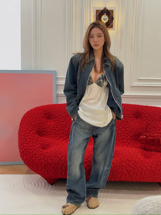 MAGDA BUTRYM - Belted Wide-leg Denim Trousers in Vintage Blue