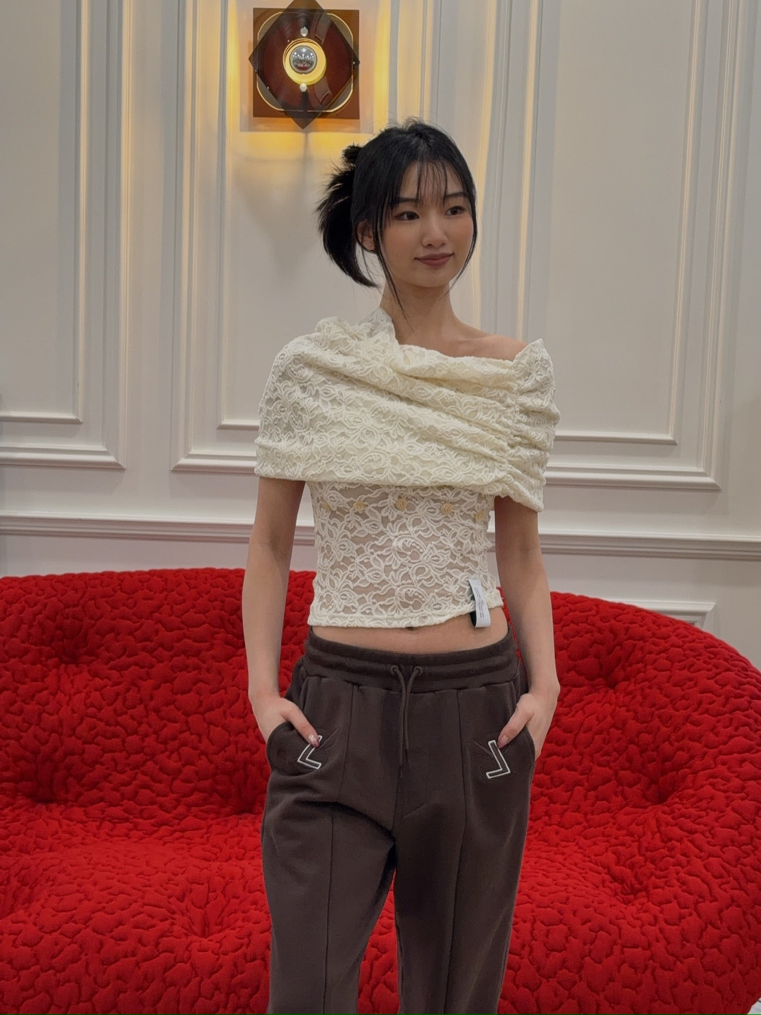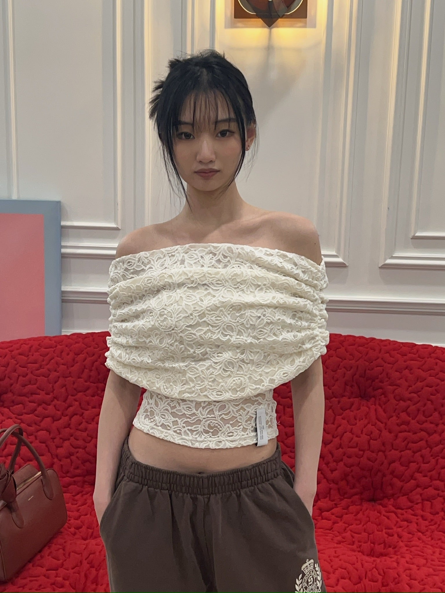 Off Shoulder Multi Buttons Laced Top in Ivory